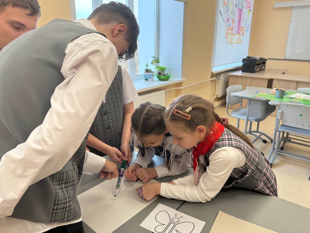 19 октября в Клубе выходного дня учащиеся начальной школы стали участниками увлекательного творческого занятия, где они создали объемную аппликацию «Ветка яблони». Основной целью этого мероприятия было не только закрепление уже имеющихся навыков работы с бумагой, но и развитие творческого мышления и мелкой моторики у наших юных мастеров. На занятии дети с большим увлечением вырезали, сгибали и приклеивали детали, превращая обычные листы бумаги в яркие и сочные яблочки. Мы также закрепили представления о строении ветки дерева и его плодов, наблюдая за тем, как наша композиция начинает оживать. Ребята научились создавать объемные элементы, придавая аппликации глубину и реалистичность, а также практиковались в аккуратной работе с клеем и ножницами.