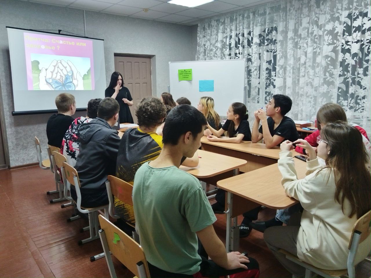 В формате интерактивного тренинга подростки обсудили ключевые составляющие здоровья — физического, психического и социального. Через мозговые штурмы, дискуссии, работу в группах и просмотр тематических видеоматериалов учащиеся осознали ценность здоровья, как основы для реализации жизненных планов и достижения счастья. Особое внимание было уделено факторам риска, влияющим на благополучие человека, и формированию ответственного отношения к собственному образу жизни.