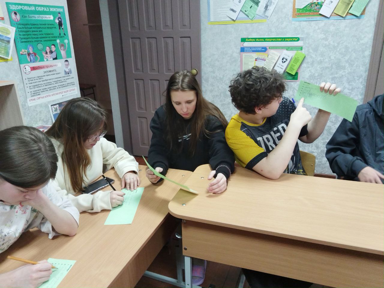 Для учащихся 5–9 классов в этот же день в рамках работы кабинета профилактики употребления ПАВ прошло важное занятие, посвящённое здоровому образу жизни. Под руководством руководителя кабинета ребята стали участниками часа общения «Быть здоровым — быть счастливым!».