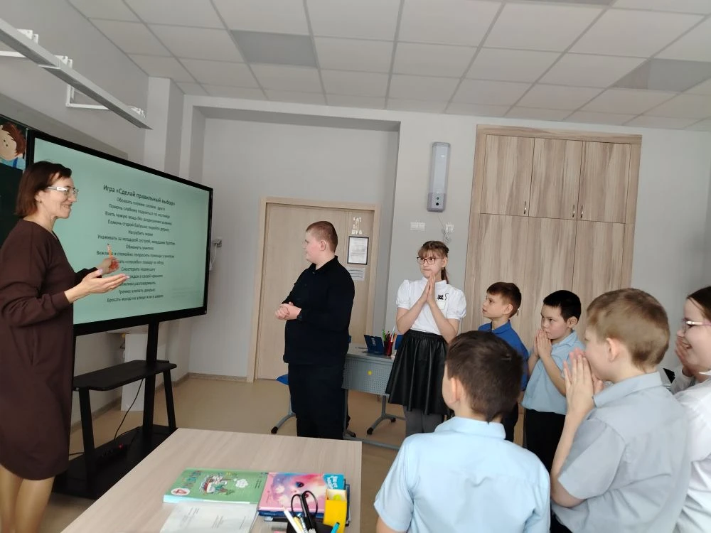 Для учеников 5-9 классов в рамках месячника профилактики и безопасности «Сделай правильный выбор» была проведена деловая игра «Мой выбор — моя ответственность». Ее цель — актуализация правовых знаний, формирование правовой культуры и уважения к правам других людей. Участники разделились на команды и прошли несколько этапов: разгадывали анаграммы на правовую тематику, отвечали на вопросы викторины о законах и государственных символах, анализировали сказки с точки зрения нарушения прав, угадывали права детей по песням и создавали рисунки по статьям Конвенции о правах ребенка. Мероприятие завершилось рефлексией «Дерево познаний», где каждый поделился своими новыми знаниями и впечатлениями.