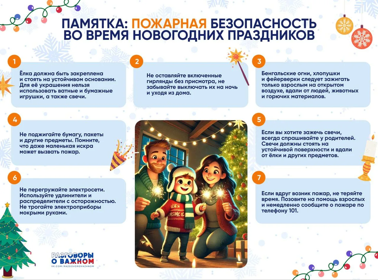 Друзья! В преддверии волшебных праздников мы создаём уют, украшаем дома и готовимся к встрече Нового года. Давайте помнить, что в этой суете главное — безопасность наших близких и нашего дома.