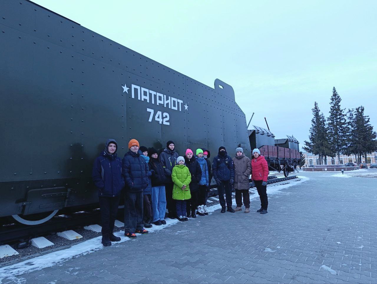 На привокзальной площади ребята узнали историю поезда «Патриот».