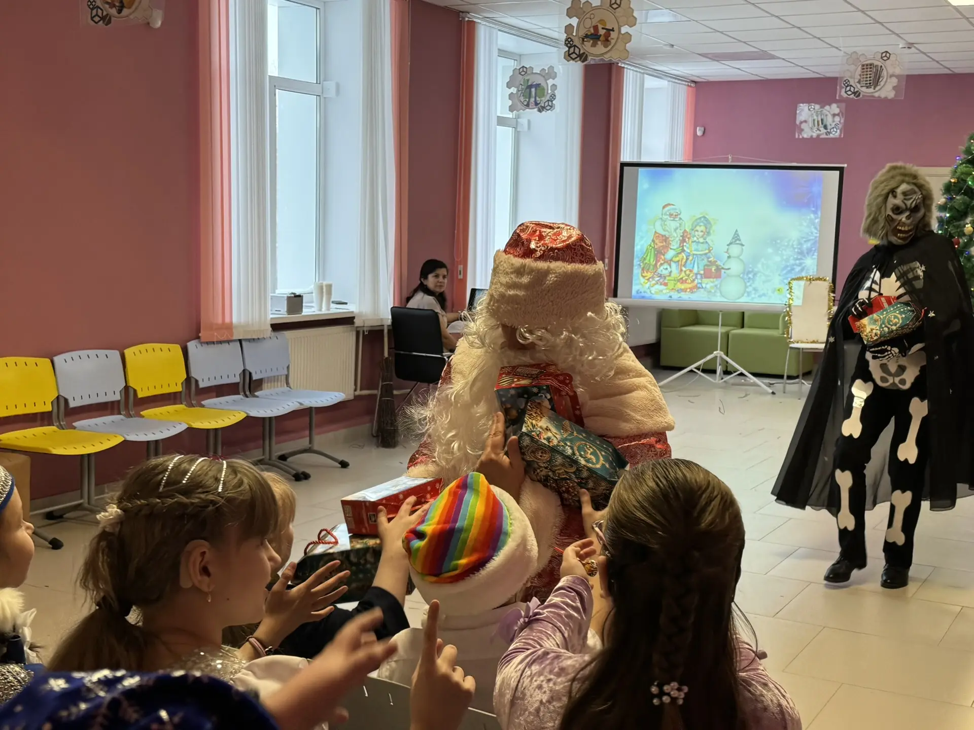Кульминацией праздника, конечно же, стал долгожданный приход Деда Мороза. Дети водили хороводы, играли в подвижные игры «Варежка» и «Самый ловкий», а также порадовали гостя творческими номерами — песнями, танцами и частушками в их исполнении.