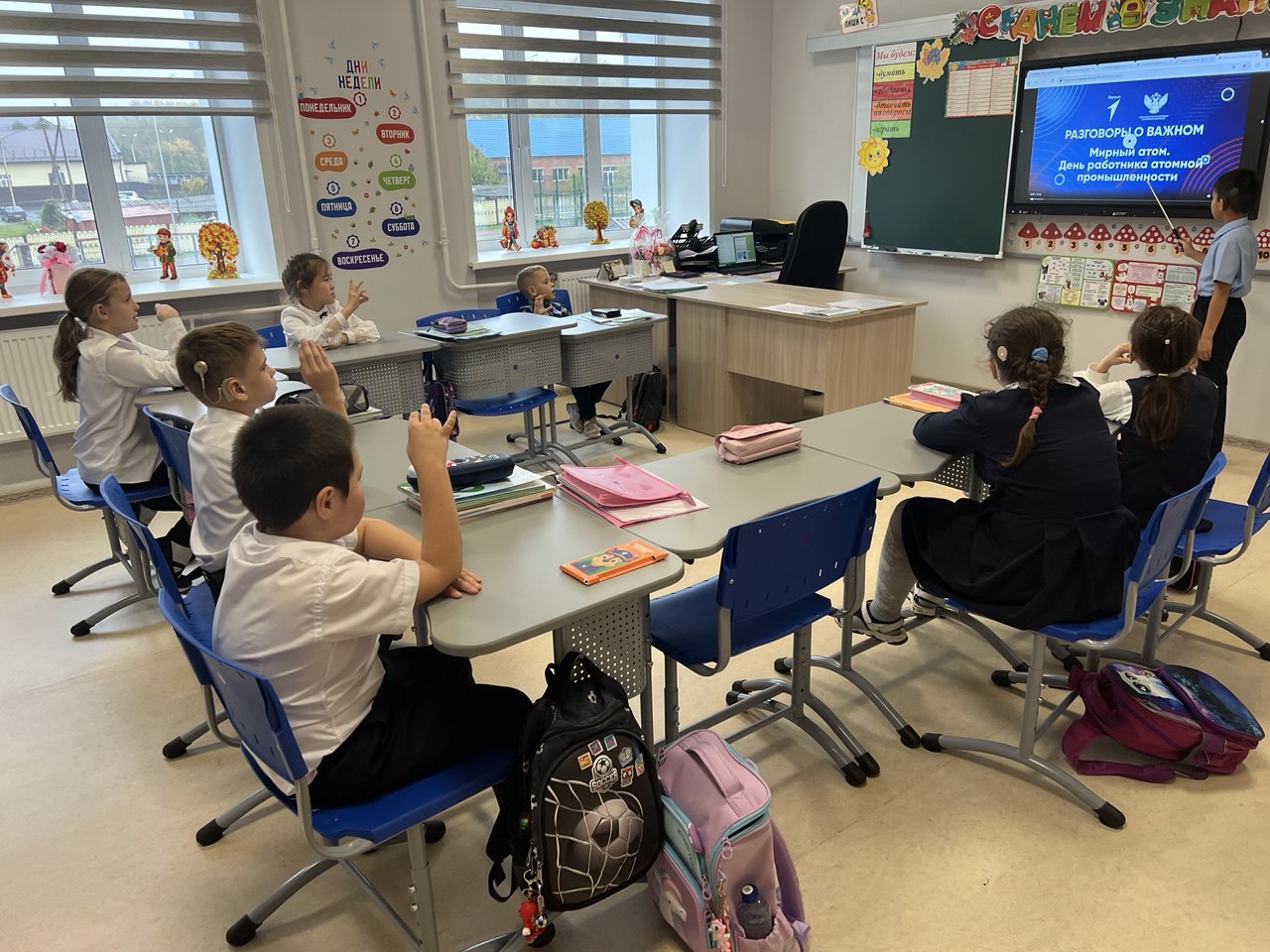22 сентября в нашей школе прошли «Разговоры о важном», посвященные мирному атому и Дню работника атомной промышленности, который страна отмечает 28 сентября. Учащиеся узнали, что атомная отрасль — это не только электростанции, дающие чистую энергию, но и ядерная медицина, помогающая в диагностике и лечении тяжелых заболеваний, уникальные материалы и технологии для космоса, а также мощные ледоколы, осваивающие Арктику. Особый акцент был сделан на роли России как мирового лидера в этой области. Наша страна не только первой в мире построила АЭС в Обнинске, но и сегодня продолжает развивать самые современные и безопасные ядерные технологии. Этот разговор помог школьникам осознать важность труда работников атомной промышленности — людей высочайшей квалификации, чья работа требует глубоких знаний, ответственности и преданности своему делу. Их труд — гарантия энергетической независимости и технологического суверенитета нашей страны.