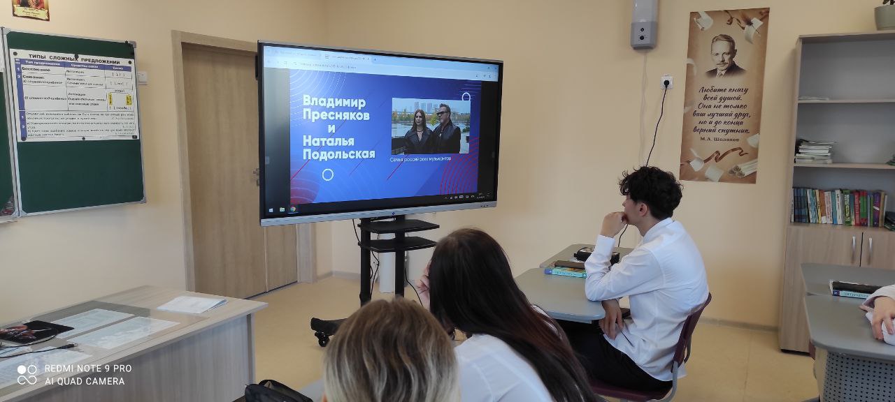 Урок начался с мотивирующего вступления юного актера Станислава Соломатина, известного многим зрителям благодаря ролям в сериалах «Райцентр», «Капитан Крюк» и «Папины дочки. Новые». Далее участники услышали трогательную историю музыкального дуэта Владимир Пресняков и Наталья Подольская, рассказавших о своем пути к созданию прочного семейного союза и творческой гармонии.