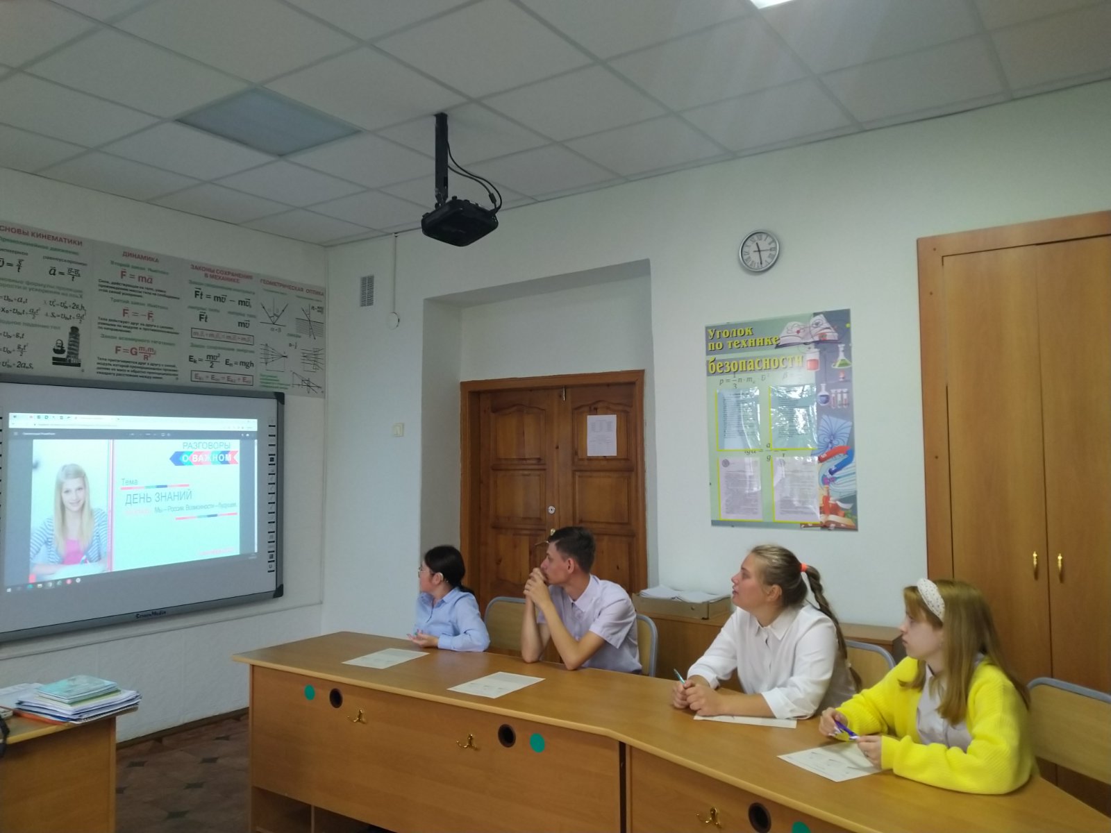 Первое внеурочное занятие 5 сентября, состоялось на тему «День знаний». Если в классах начального звена первый разговор о важном касался тем «Для чего я учусь» и «Зачем нам знания», то для учеников 5-9 классов тема звучала так «Мы – Россия! Возможности – будущее». Классные руководители на первом занятии активно применяли видеоматериалы и другие наглядные пособия.