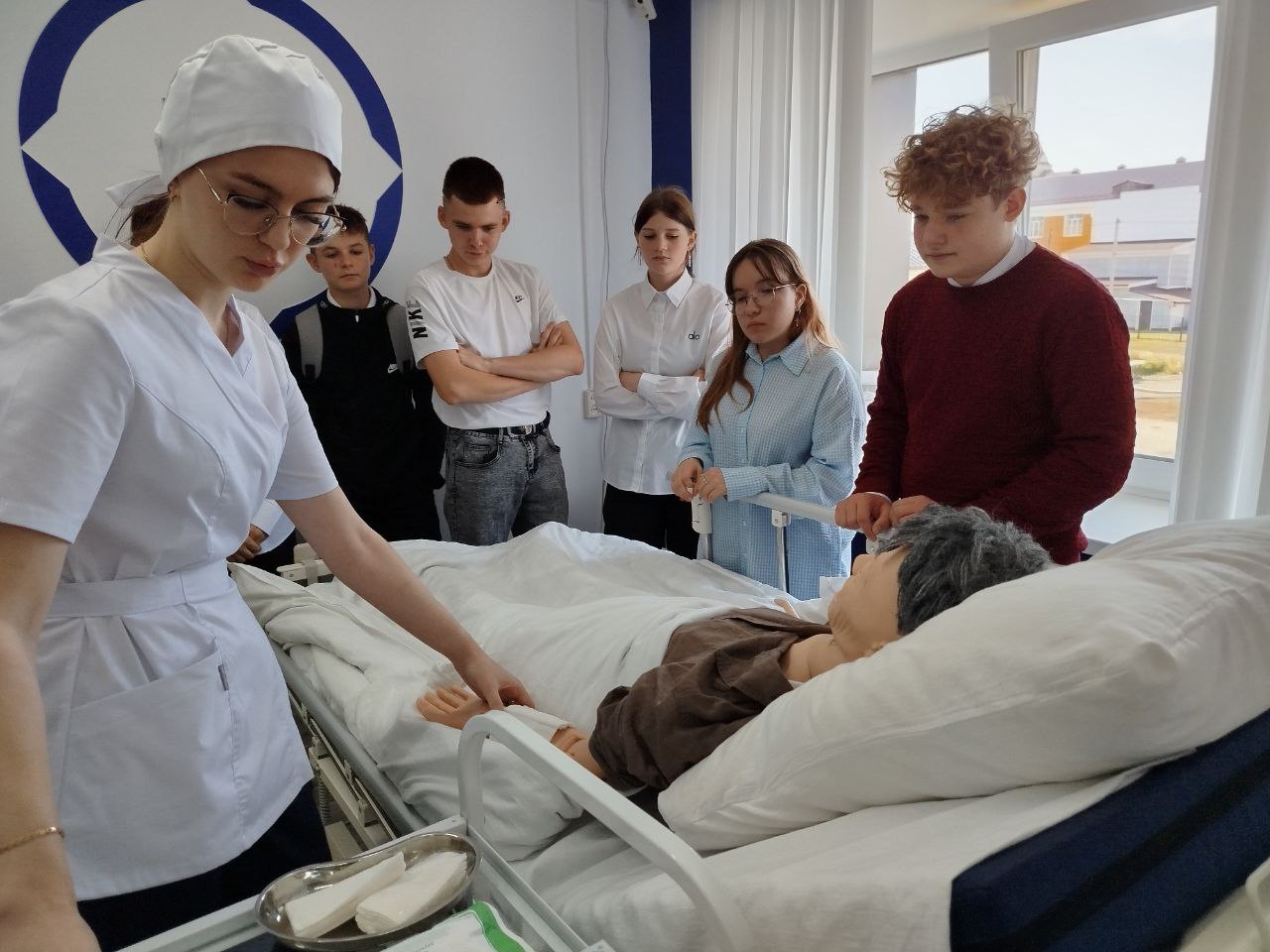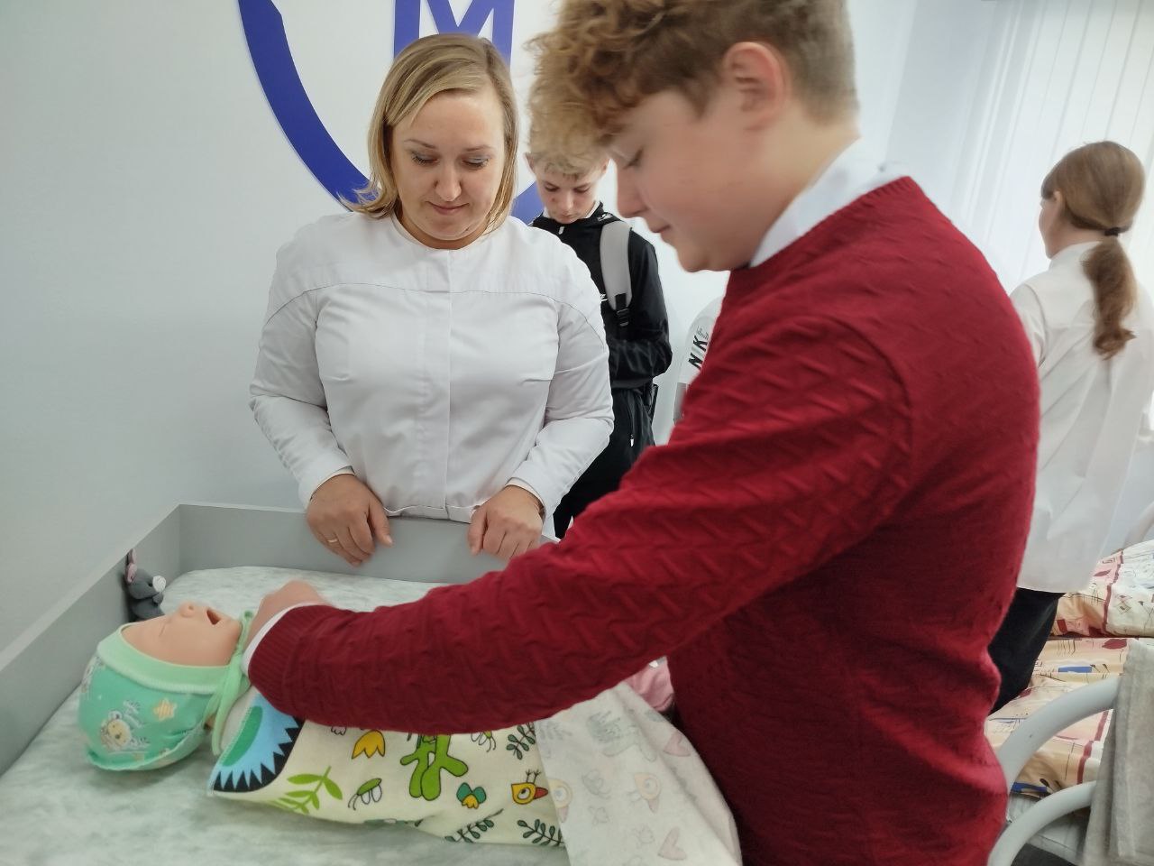 Для 9а класса 24 сентября была проведена профориентационная экскурсия в мастерские Ишимского медицинского колледжа. На локациях мы познакомились с профессиями, которые готовит колледж. На практике попробовали оказать первую помощь, медицинский уход за больным, пеленание ребенка. В конце мероприятия в преддверии недели жестового языка, ребятам вручили поздравления-сердечки.