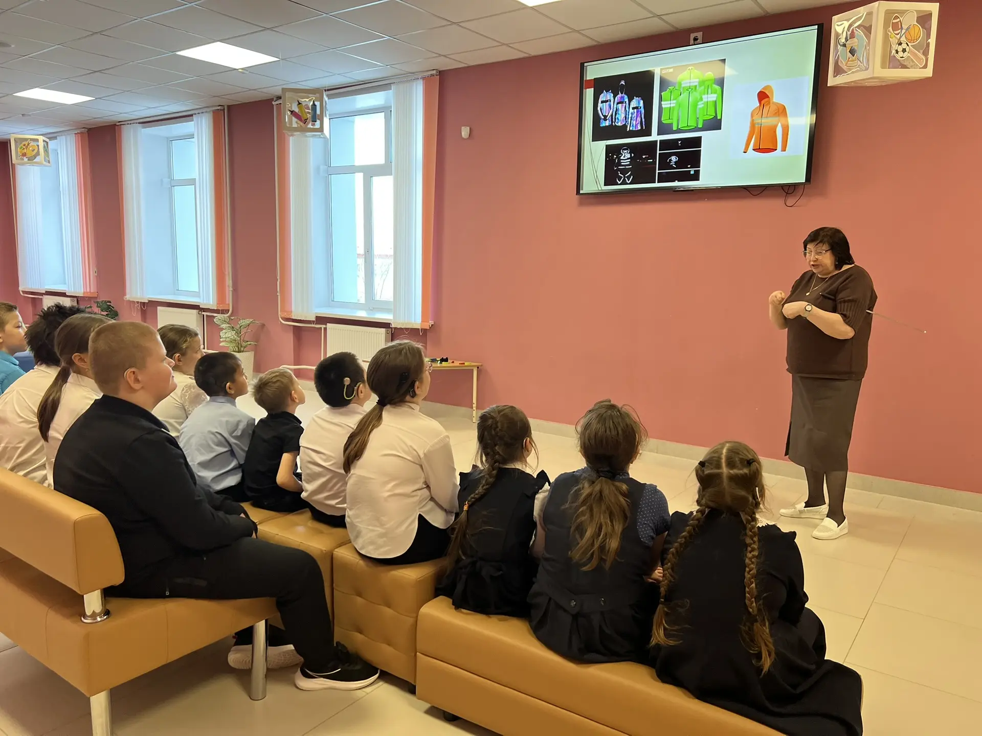 Наглядные примеры: Школьникам показали, как правильно размещать световозвращатели, чтобы они были видны водителям со всех сторон, и продемонстрировали различные их виды — брелоки, браслеты, наклейки и нашивки.